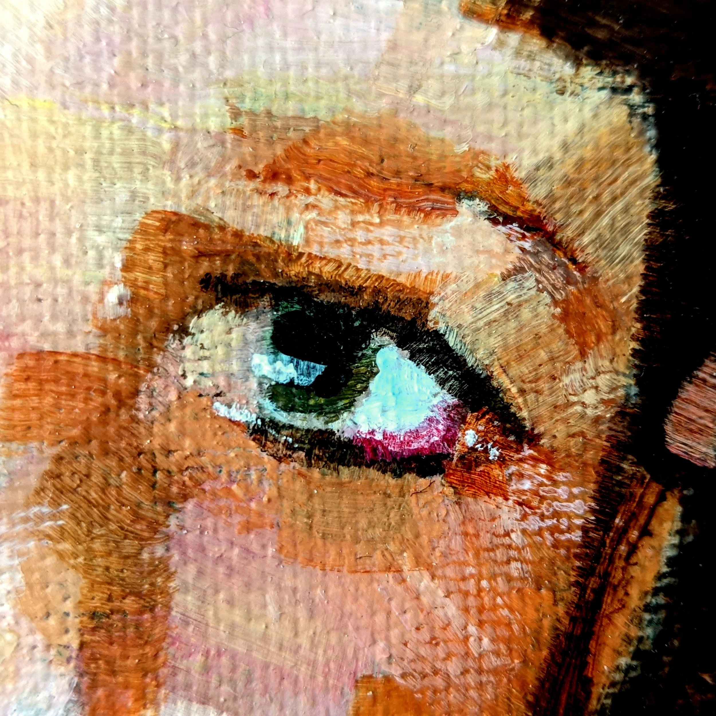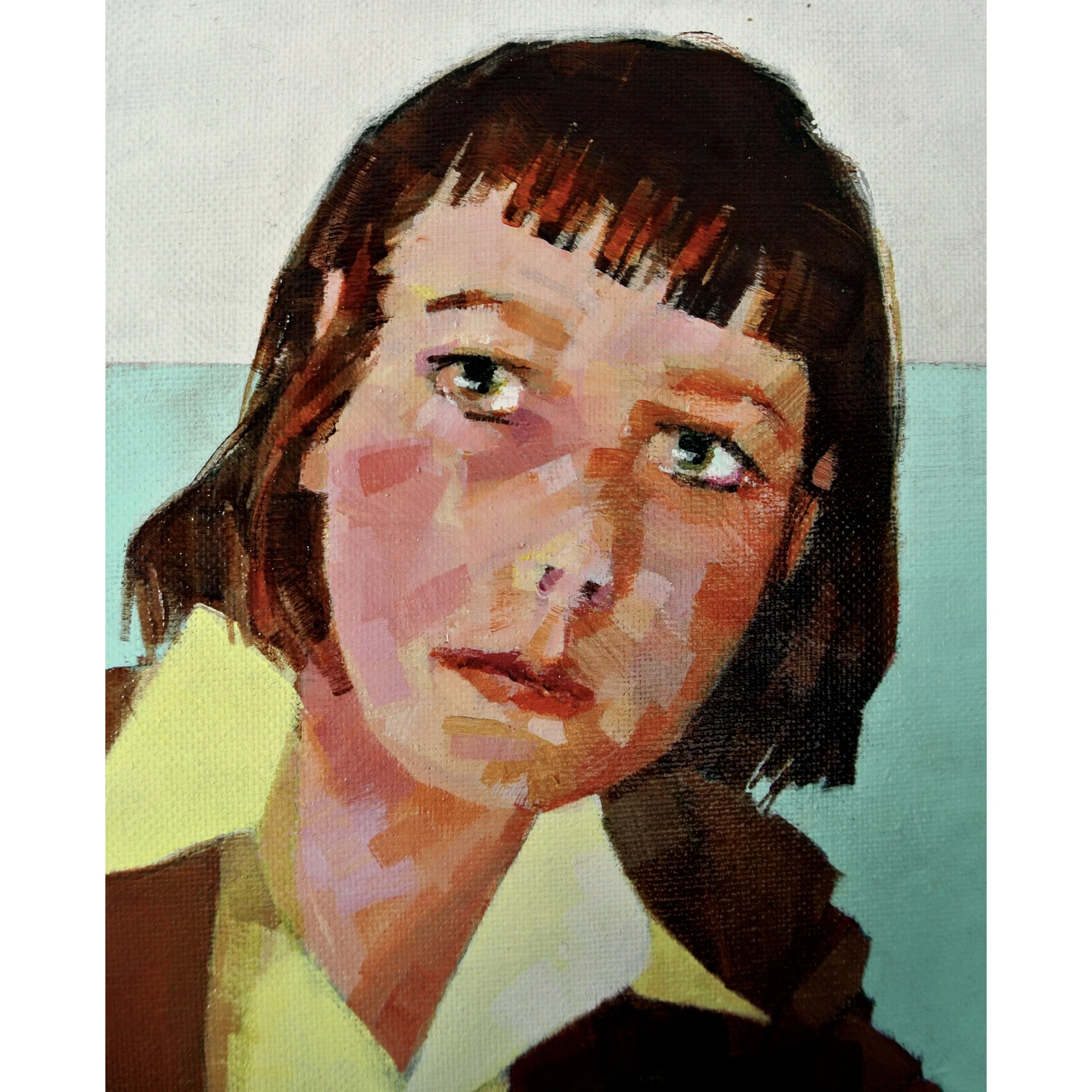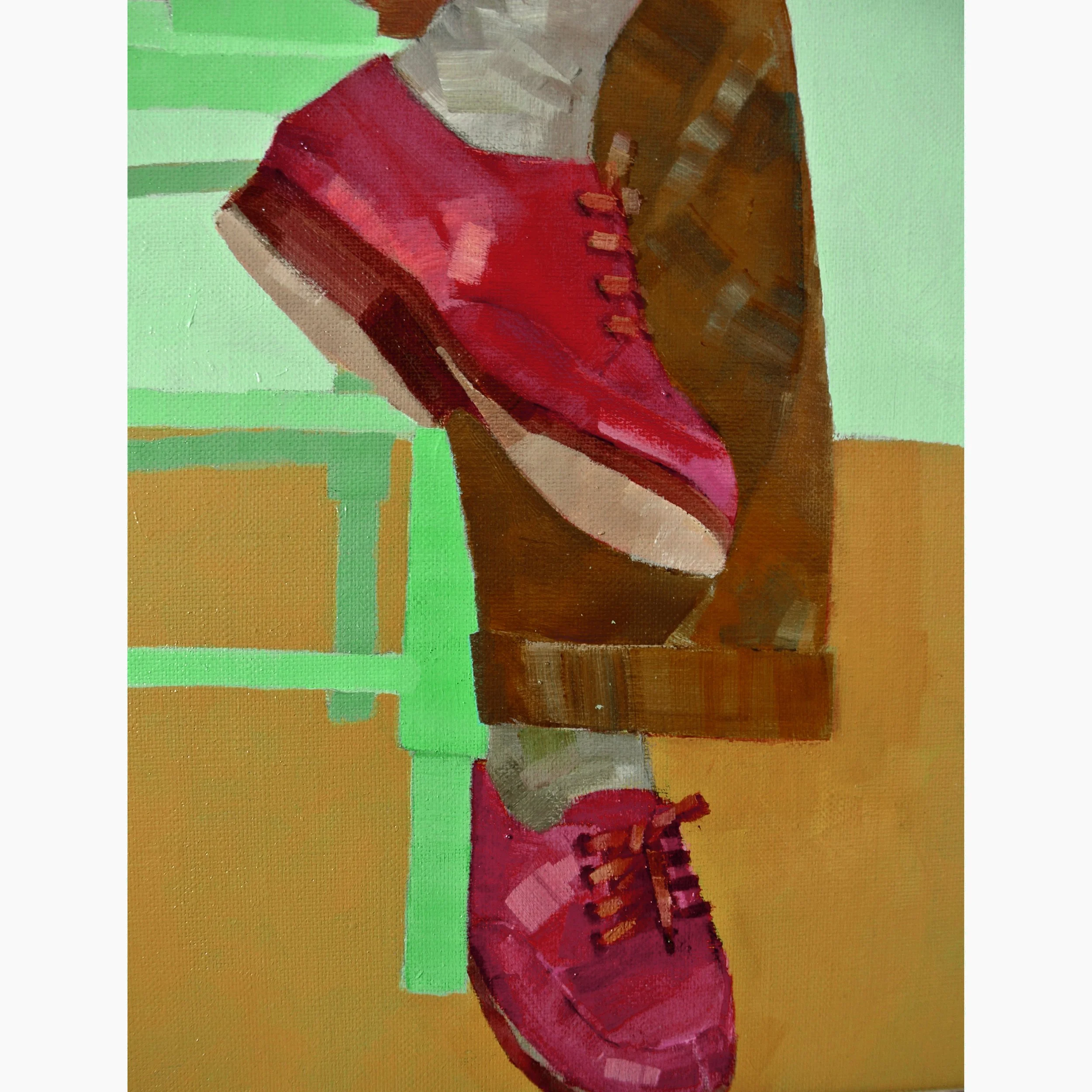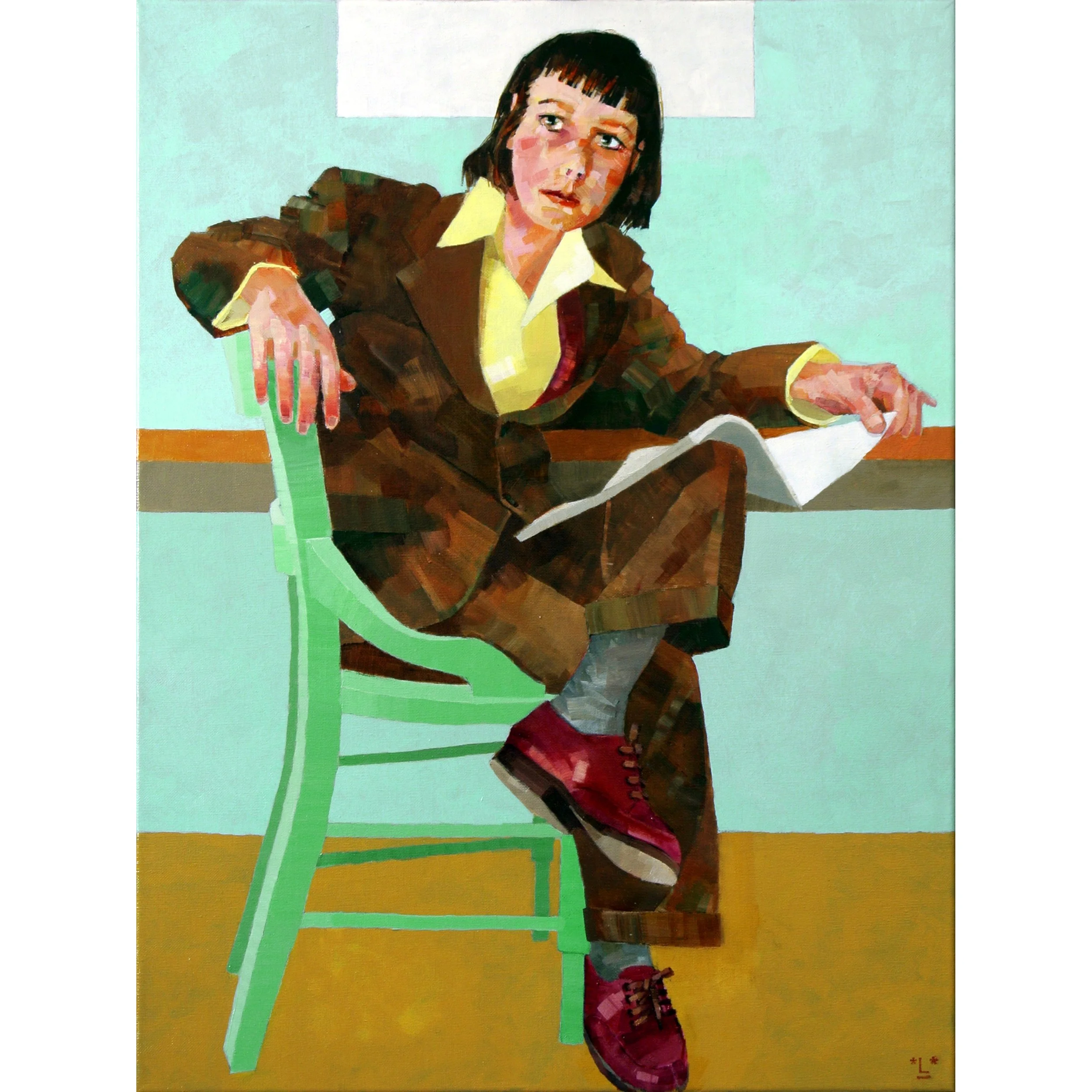 Carson McCullers circa 1942. Painting, acrylic on canvas 60 x 80cm. I saw a black and white photo of this celebrated American writer wearing her distinctive man’s suit. This portrait with its invented furniture and colours is loosely based on that wonderful composition, photographer unknown (to me). For McCullers’ shoes and jacket lining I chose a fashionable colour from that era… oxblood.