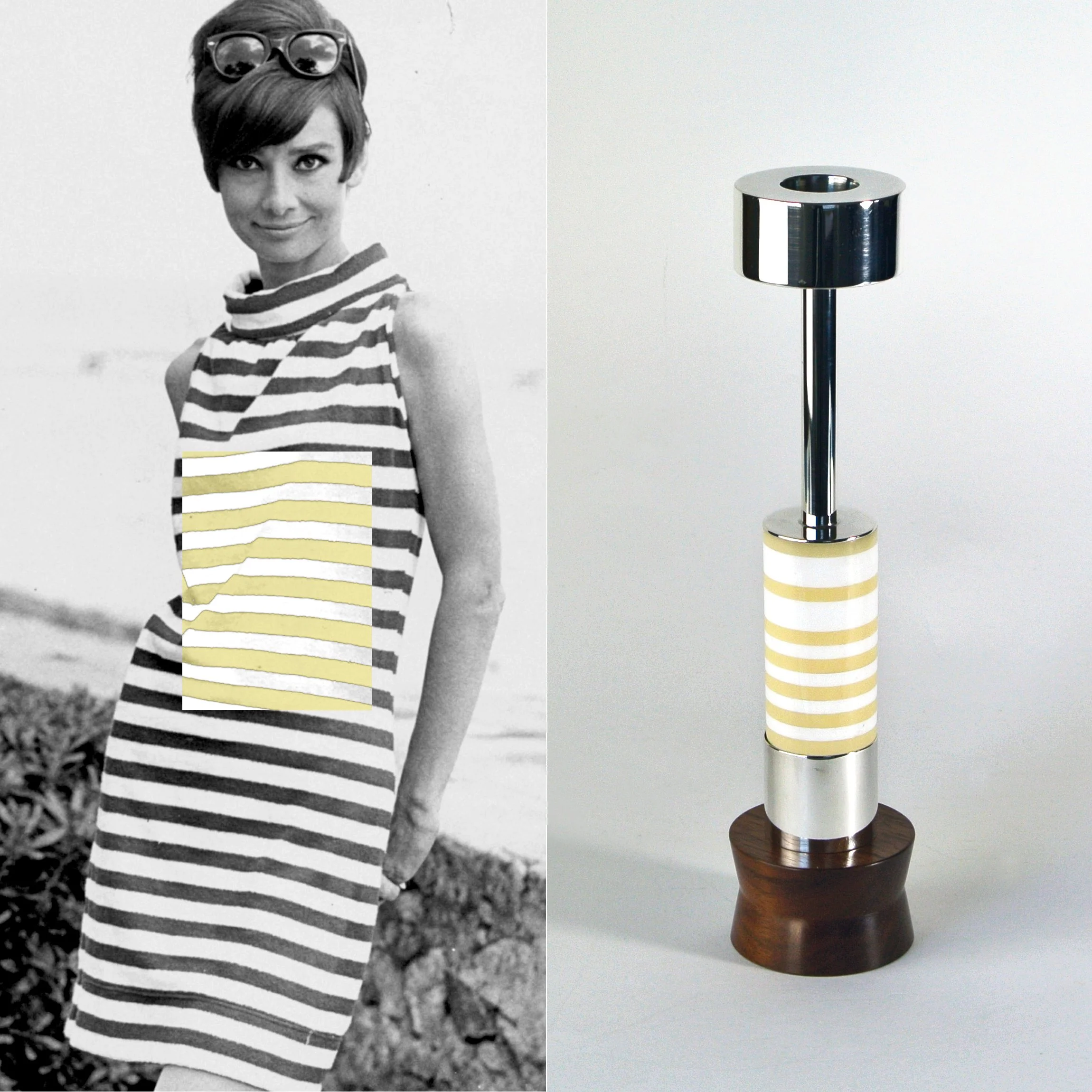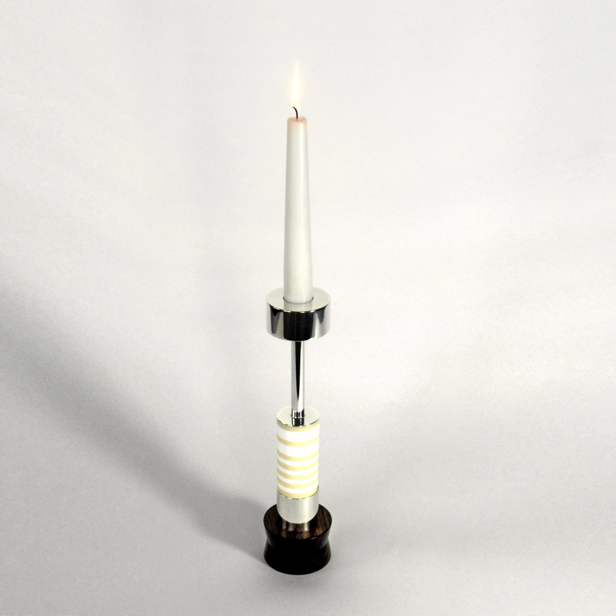 Silver Beacon candlestick. Useful object, Sterling Silver, walnut hardwood, acrylic 26cm high. This piece uses a delicious combination of materials including solid silver. It’s also known to me as Audrey Hepburn.